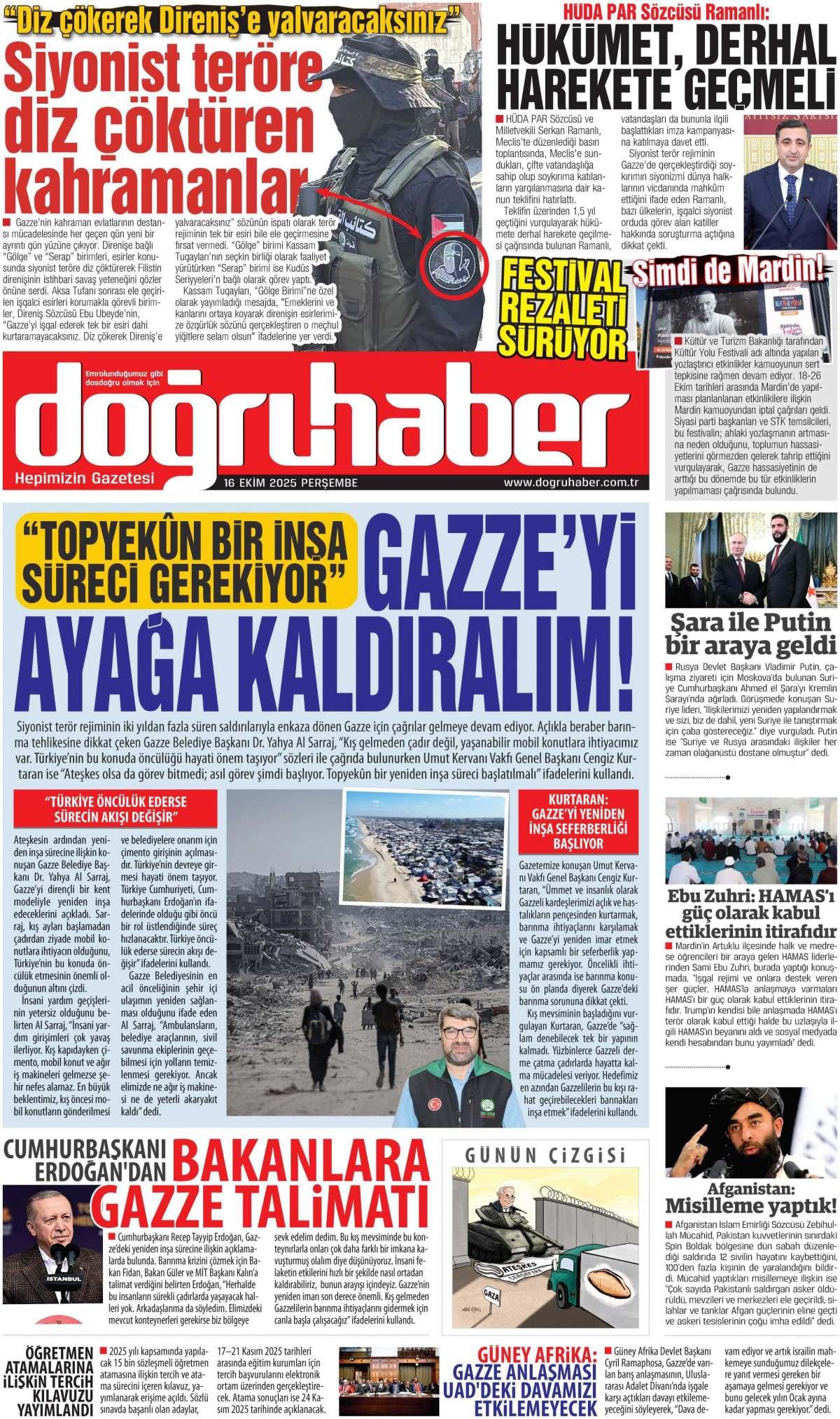Doğru Haber Gazetesi 16 Ekim 2025 Günü Manşeti